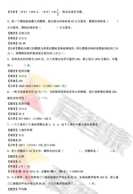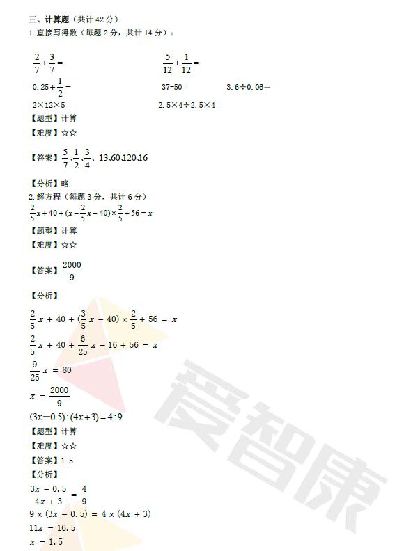 成都实外2017小升初模拟考试数学试卷答案(5)