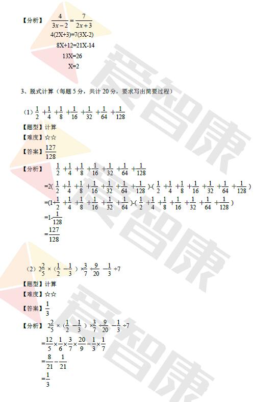 成都西川中学小升初模拟考数学试卷及答案(5)