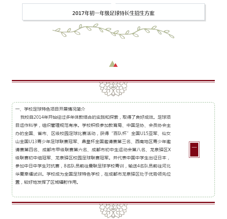 2017年北大附属成都实验小升初足球特长生招生方案 成都家长帮 2017-04-01 11:28:19 关注成都北大附属成都实验小升初的家长注意下!下面是2017年北大附属成都实验小升初足球特长生招生方案,欢迎大家查看~ 首页 上一页 下一页 尾页