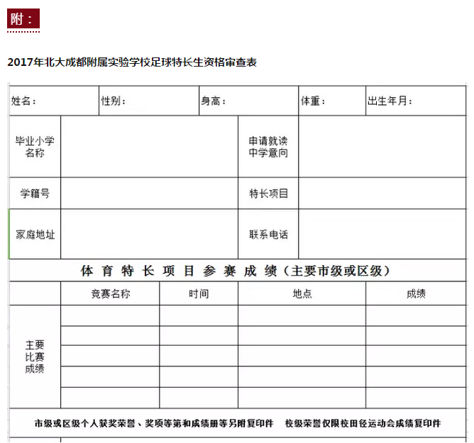 2017年北大附属成都实验小升初足球特长生招生方案(3)
