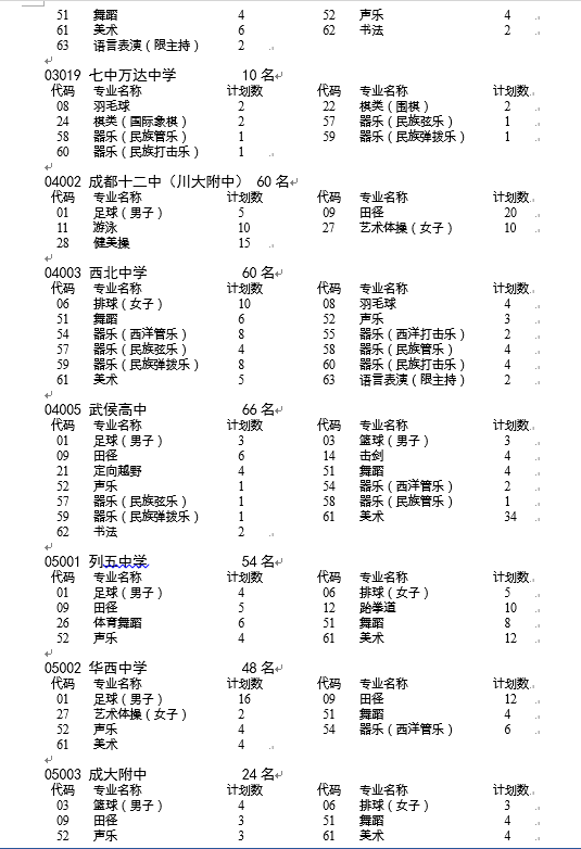 2017成都中心城区区属高中学校艺体特长生招生计划(3)