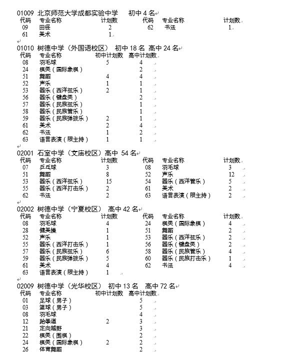2017成都市直属(直管)学校艺体特长生招生计划