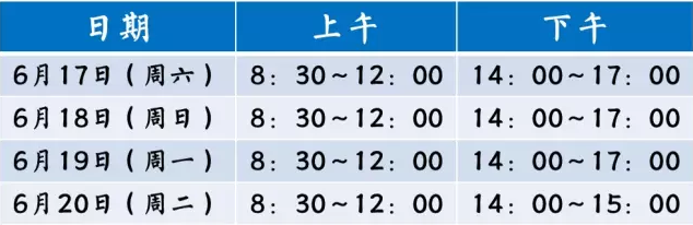 6月21日(周三)7:45~16:00