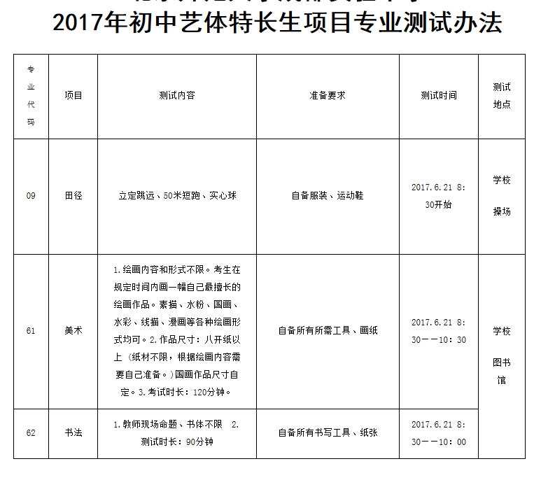 2017成都初、高中艺体特长生招生工作有关事宜通知