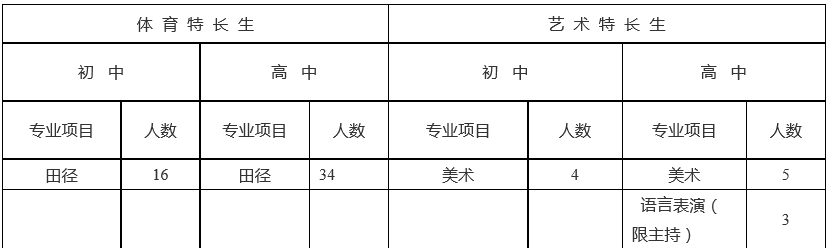 3.报考初中的体育特长生必须具有某项体育专长且达到一定水平、在学校或区(市)县级教育行政部门举办的运动会中取得一定成绩。报考高中的体育特长生必须具有区(市)县级及以上教育行政部门和体育行政部门共同主办的体育竞赛前八名证书,或具有三级及以上运动员证书。