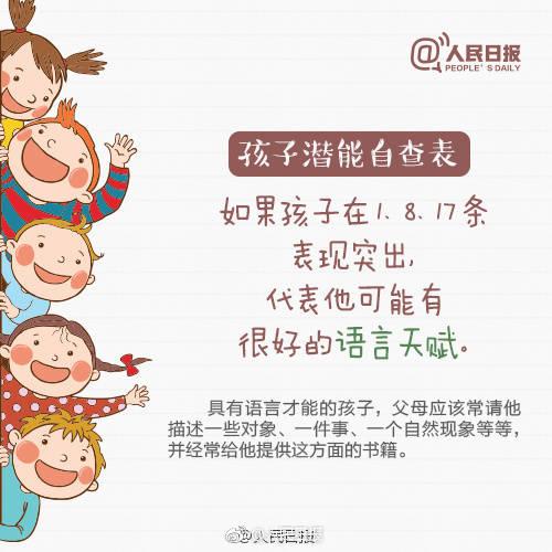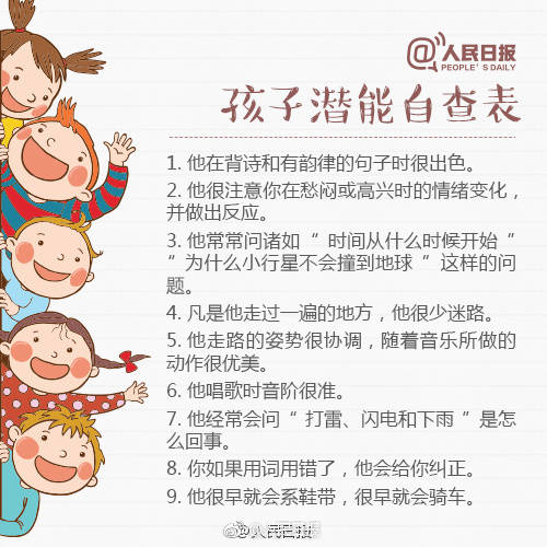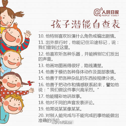 下面是人民日报发的孩子潜能自查表,感兴趣的家长快来看一看吧!