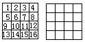 1.将1~16十六个数填入下图的空格内(如下左图),然后把上下、左右的八个数交换位置,重新排列后填入右图,使每行、每列、每条对角线上的和都相等。你能算出这个和是多少吗?