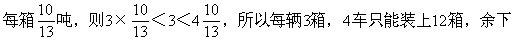 下面说明只有4辆车不能保证。如把10吨货平均放在13个箱子中,即