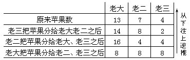 列表用逆推法求原来兄弟三人的苹果数: