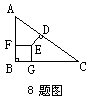 8.直角三角形ABC的三边分别为AC=3,AB=1.8,BC=2.4,ED垂直于AC,且ED=1,正方形的BFEG边长是______.