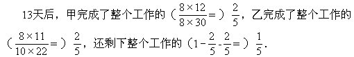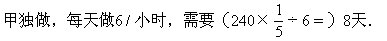 一件工作,甲需(8×30=)240小时完成,乙需(10×22=)220小时完成。