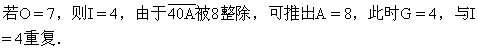 在百位上,由于百位向千位进1,所以O=5,6,7,8.试验: