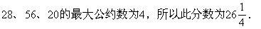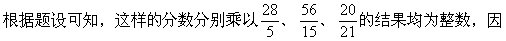 此分数的分子应是5、15、21的公倍数,分母是28、56、20的公约数。为使这样的分数取最小,则分子是5、15、21的最小公倍数为105,分母是