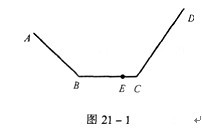 1.如图21-l,A至B是下坡,B至C是平路,C至D是上坡。小张和小王在上坡时步行速度是每小时4千米,平路时步行速度是每小时5千米,下坡时步行速度是每小时6千米。小张和小王分别从A和D同时出发,1小时后两人在E点相遇。已知E在BC上,并且E至C的距离是B至C距离的1/5.当小王到达A后9分钟,小张到达D.那么A至D全程长是多少千米?