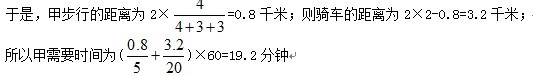 参考方案如下:甲先步行0.8千米,再骑车3.2千米;