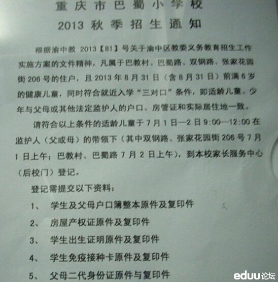 重庆奥数网:明年秋季起,重庆“小升初”一律免试划片就近入学。这一政策又让好多人都慌了神哟。估计想读好学校的,现在都在考虑要不要买学区房了吧。看到好多人都在问重庆小学划片的事情,我这里就再做一个整理,把去年重庆的招生政策和一些学校的划片范围,报名的时间,给大家做一个整理。大家也可以看看,自己住的地方能够读什么学校。