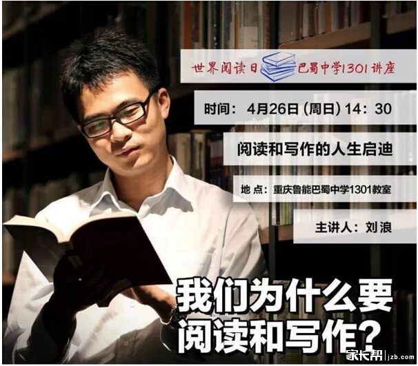 今天是世界阅读日,借此机会小编转发一条重庆巴蜀中学4月26日的——我们为什么阅读和写作的公益讲座。