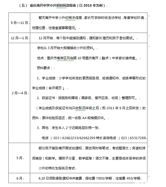 重庆南开中学小升初考试与面试形式解读