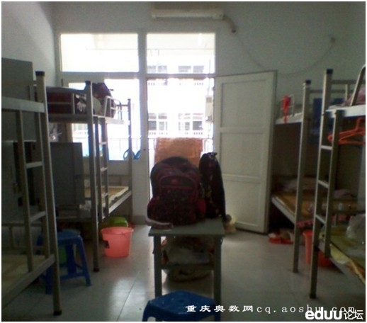 男女生寝室格局基本一致,底楼为6人间,其余楼层为8人间,上下床铺,每人1小立柜,寝室内有空调,2个洗漱池和2个厕所。