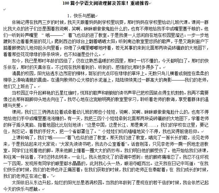 2016重庆小升初择校考试有为奥数头疼的孩子,也有为了语文阅读难过的孩子,下面是2016重庆小升初家长“我的猴儿要加油”分享的100篇小学语文阅读理解,供2016重庆小升初择校备考考生参考。