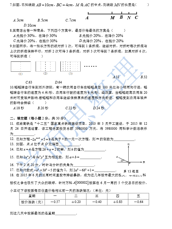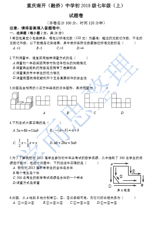 【重庆南开中学初一数学试卷】