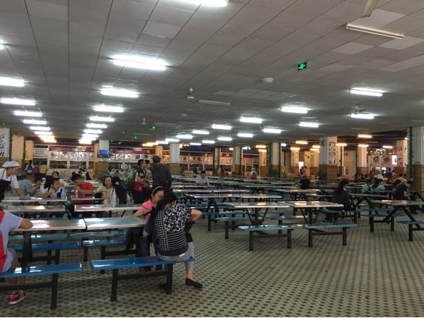 食堂上下两层,座位在中间四周全是吃的,各种口味,面包房水果店应有尽有,贪吃的12完全不用担心种类,学校里面所有的东西都是刷饭卡,不用担心12带钱不安全的问题,记住卡好饭卡丢了20元挂失补办。