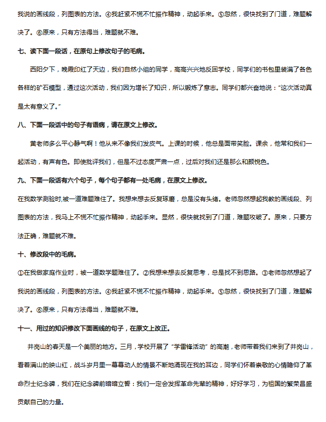 2017重庆小升初语文练习:修改病段(2)