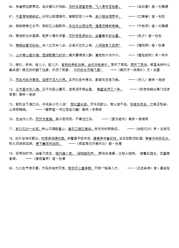 重庆小升初常考80首古诗填空练习及答案(4)