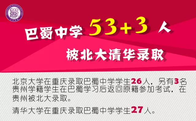 喜报!巴蜀中学53+3人被北大清华录取,快来跟小编一起看看吧!