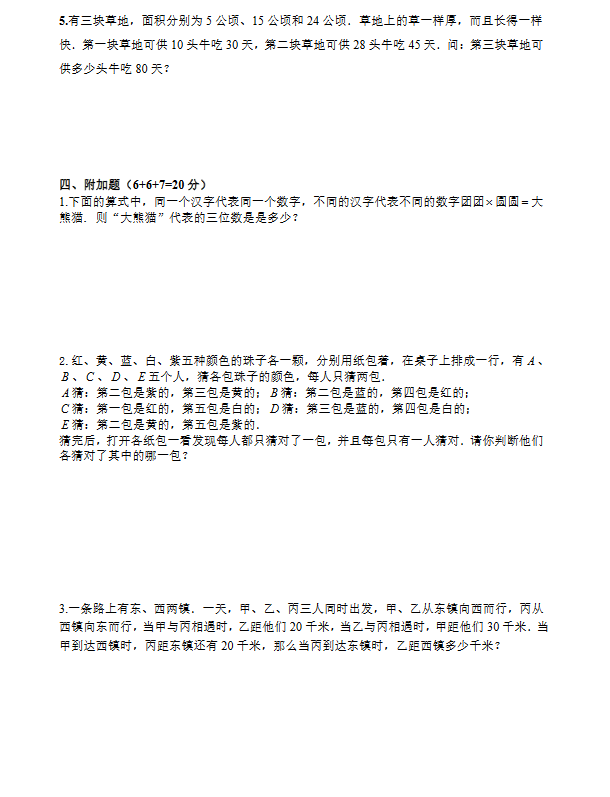 2018重庆小学六年级数学模拟测试卷(四)(4)