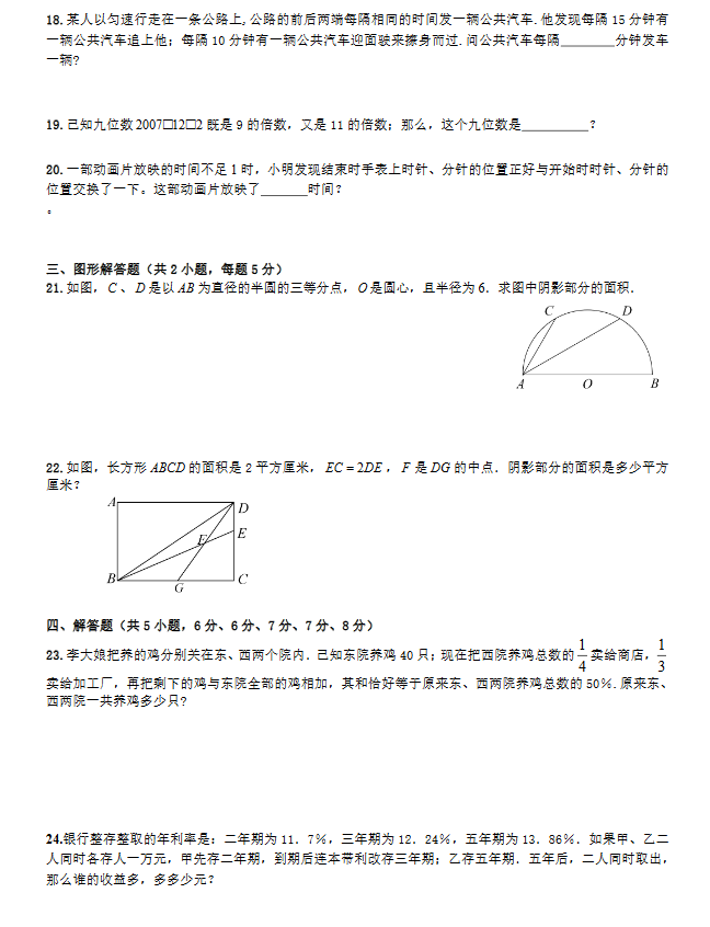 2018重庆小学六年级数学模拟测试卷(五)(3)