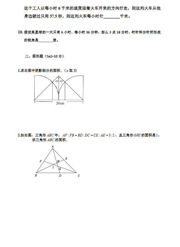 2018重庆小学六年级数学模拟测试卷(六)(2)