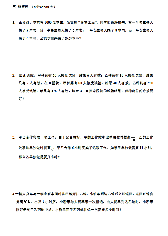 2018重庆小学六年级数学模拟测试卷(六)(3)