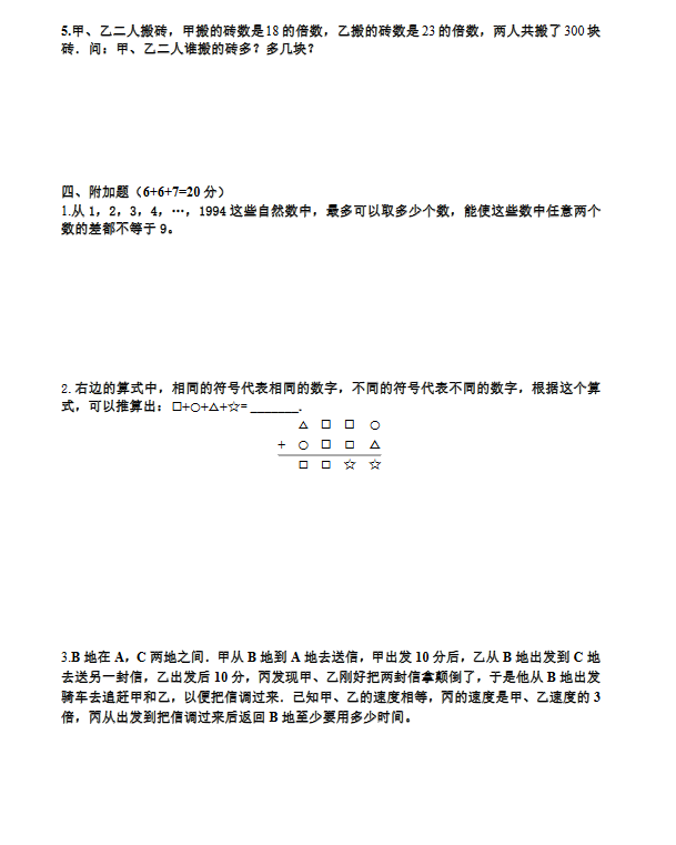 2018重庆小学六年级数学模拟测试卷(六)(4)