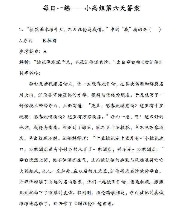 2018重庆小高组语文每日一练(第六天)(2)