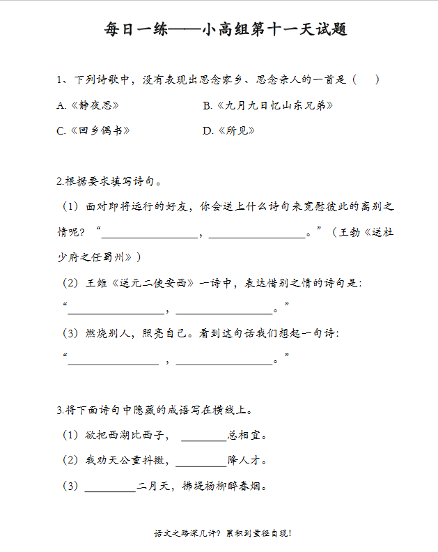 2018重庆小高组语文每日一练(第十一天)