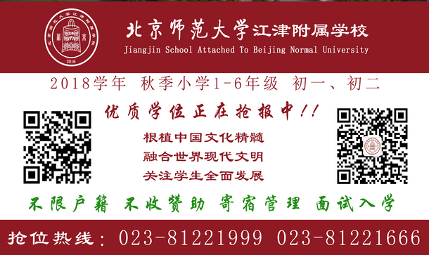 1、学校报名:重庆市江津区滨江新城北京师范大学江津附属学校招生办公室