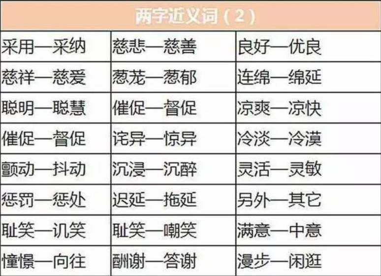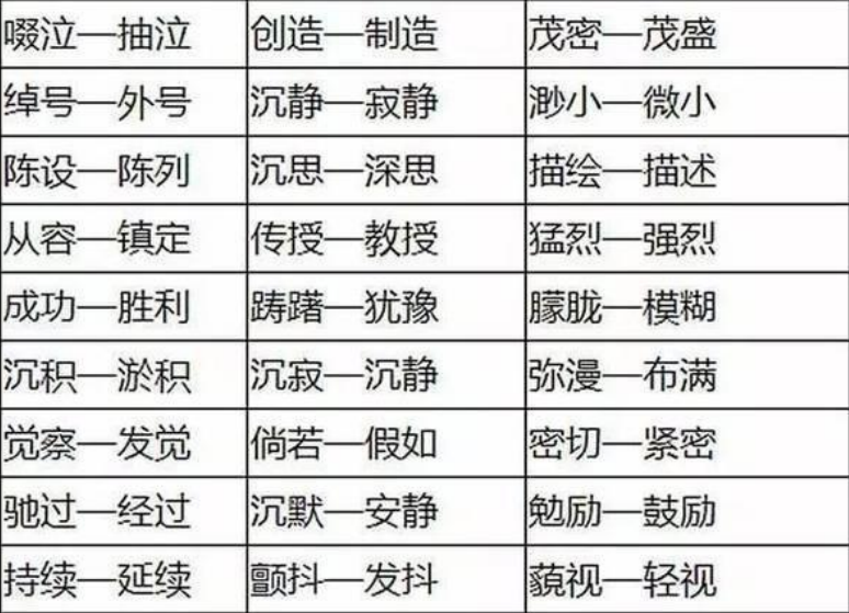 2018年重庆小学语文近义词分类(二)