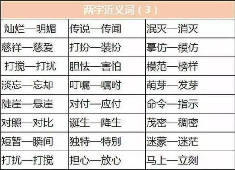 2018年重庆小学语文近义词分类(三)