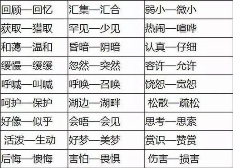 2018年重庆小学语文近义词分类(五)