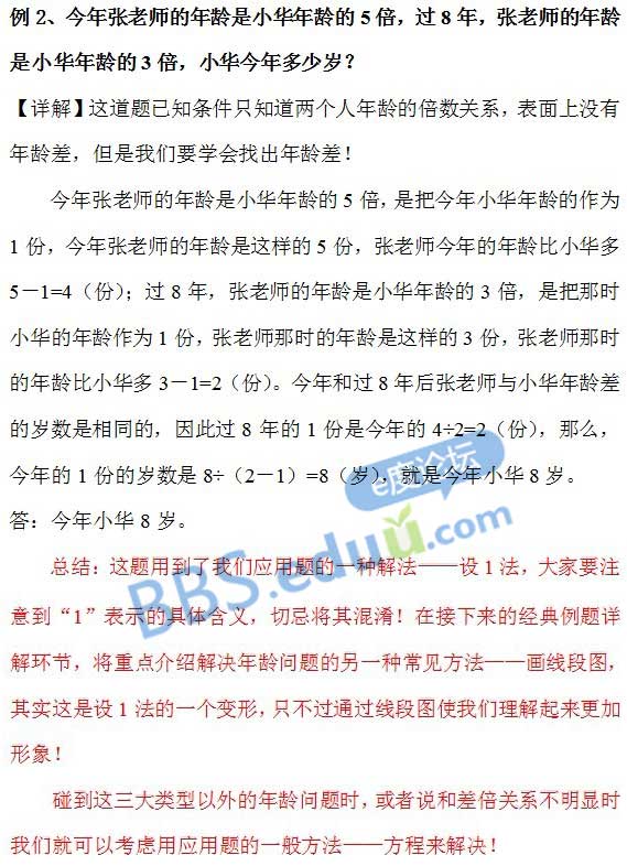 1、转化为和差问题的年龄问题