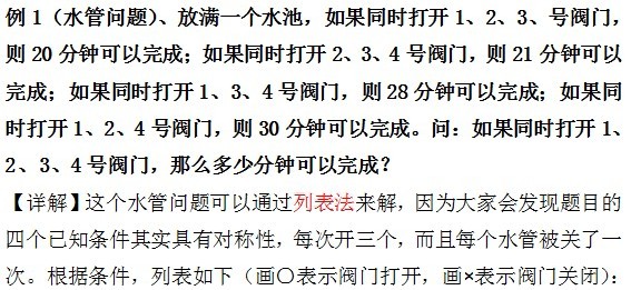 一般把工作总量看作单位“1”, 表示出各个工程队(人员)或其组合在统一标准和单位下的工作效率。(注意:用假设法解工程题,可任意假定工作总量为2、3、4、5……。特别是假定工作总量为几个工作时间的最小公倍数时,分数工程问题可以转化为比较简单的整数工程问题,计算将变得比较简便。)
