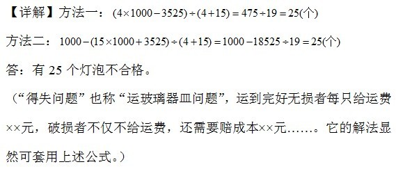 例、灯泡厂生产灯泡的工人,按得分的多少给工资。每生产一个合格品记4分,每生产一个不合格品不仅不记分,还要扣除15分。某工人生产了1000只灯泡,共得3525分,问其中有多少个灯泡不合格?