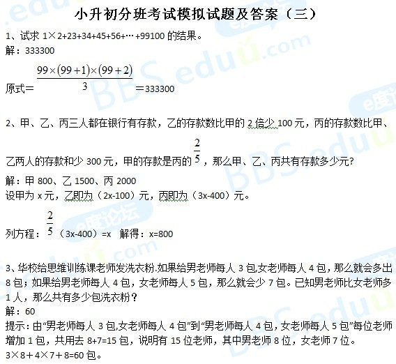 2012年长沙小升初分班考试数学模拟试卷(三) 长沙奥数网编辑整理 2012-06-26 16:39:46 长沙奥数网编辑为大家整理了2012年长沙小升初分班考试数学模拟试卷(三),供大家参考! 点我下载查看完整试题 编辑推荐: 四步助小升初学生提高奥数学习效率 长沙小升初数学必背基础知识大全 家长必读:小升初奥数学习的最佳策略 小学新课标数学难度不变 不提倡全民奥数