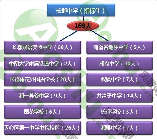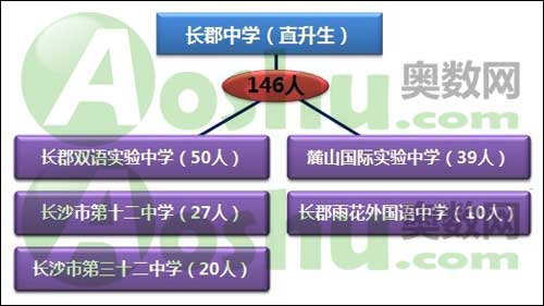 据了解,2012年长郡中学共有直升生146人,指标生169人。分别来自市内的15所中学。其中“直升生”以长郡双语实验中学以及麓山国际实验中学最多,占总人数的60%。长郡双语与麓山国际是长郡中学的委托管理学校,因此只要在这两所学校读书蛮三年的学生都可以资格竞争对口直升生的名额。