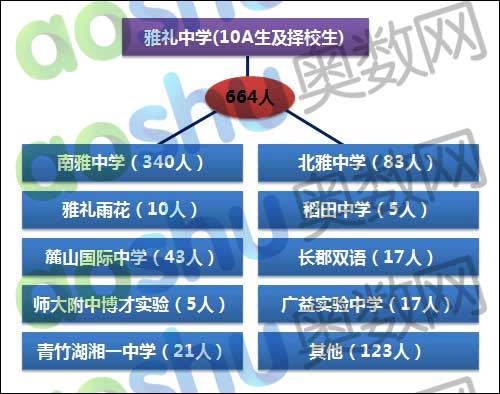 而其来源也毫无疑问的绝大部分来自于南雅中学,一共340人,占总人数的51.2%。北雅中学虽然人数也不少,但相比南雅中学而言,差距还是十分明显的。不过北雅毕竟是一所“年轻”学校,就数据上来说,还是不错了。