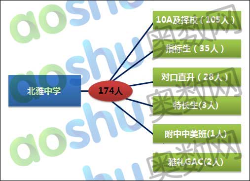 北雅与南雅中学虽然隶属同宗,但境遇却不尽相同。毕业生人数仅南雅中学的1/3。指标生和直升生的人数也并不多,60%的学生还是通过10A及择校方式升入“四大名校”的。关于早前关于北雅中学首次中考“一鸣惊人”的坊间传说,在数据面前,也就自然的失实了。