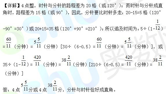 例1、我们知道,3点时时针与分针恰好成直角,那么在4点与5点之间的什么时候,分针与时针恰好成直角?(4月5号天天练)