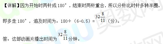 2、晚上7点到8点之间电视里播出一部动画片,开始时分针与时针正好成一条直线,结束时两针正好重合。这部动画片播出了多长时间?
