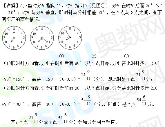 4、在7点与8点之间,时针与分针在什么时刻相互垂直?